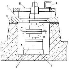 (4)在校準(zhǔn)底座B平面前,應(yīng)在底座下平面與水泥基礎(chǔ)接觸處以及底座和地腳螺栓聯(lián)接處墊上橡膠防震墊,圖 4-2 為安裝防振墊示意圖。