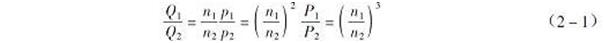 (9)風(fēng)機(jī)轉(zhuǎn)速變化與風(fēng)量、風(fēng)壓、功率的變化關(guān)系式如下: