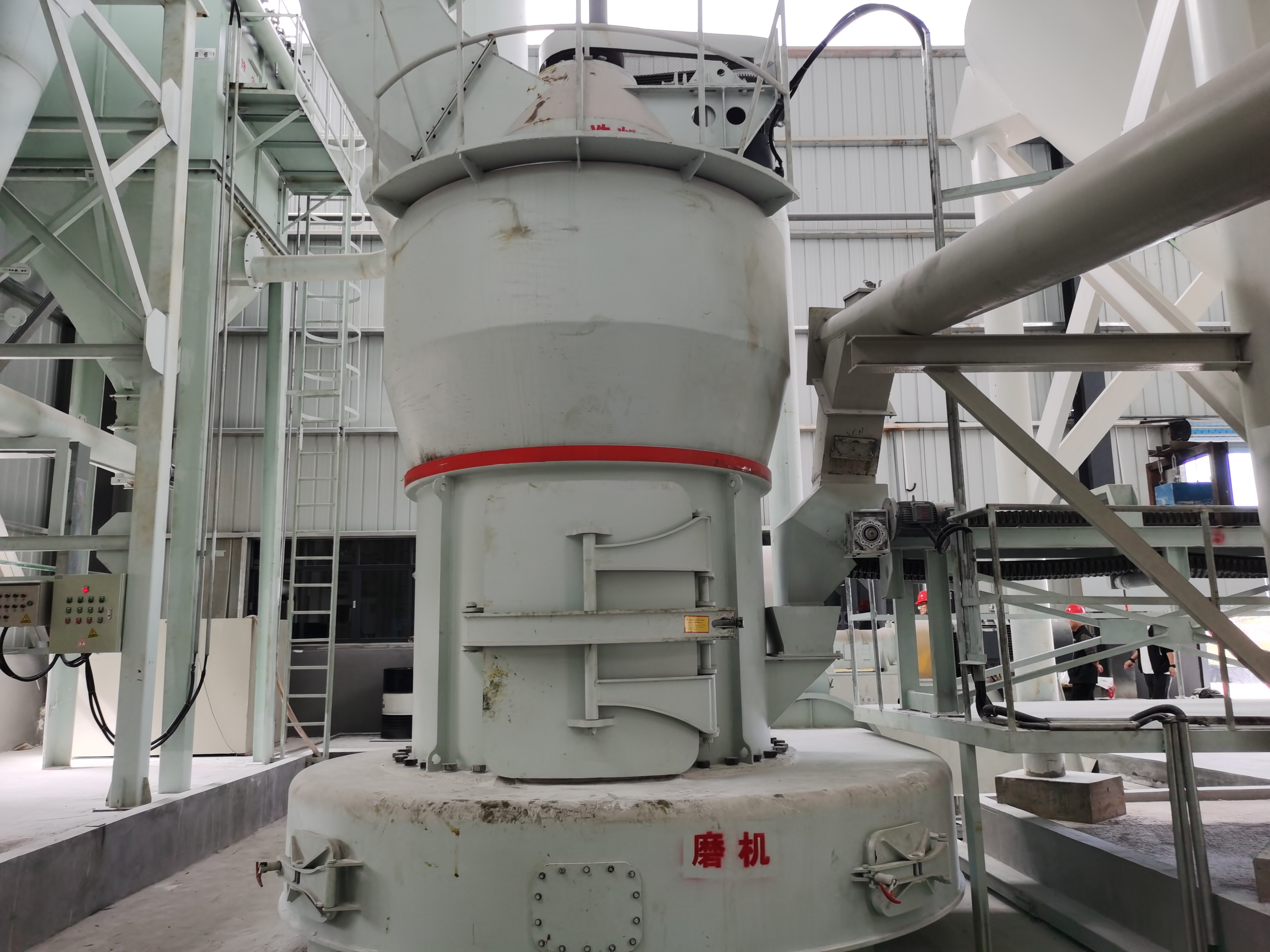 進(jìn)料:原狀粉煤灰通過(guò)給料機(jī)均勻地送入磨機(jī)內(nèi),落在磨環(huán)的中央。