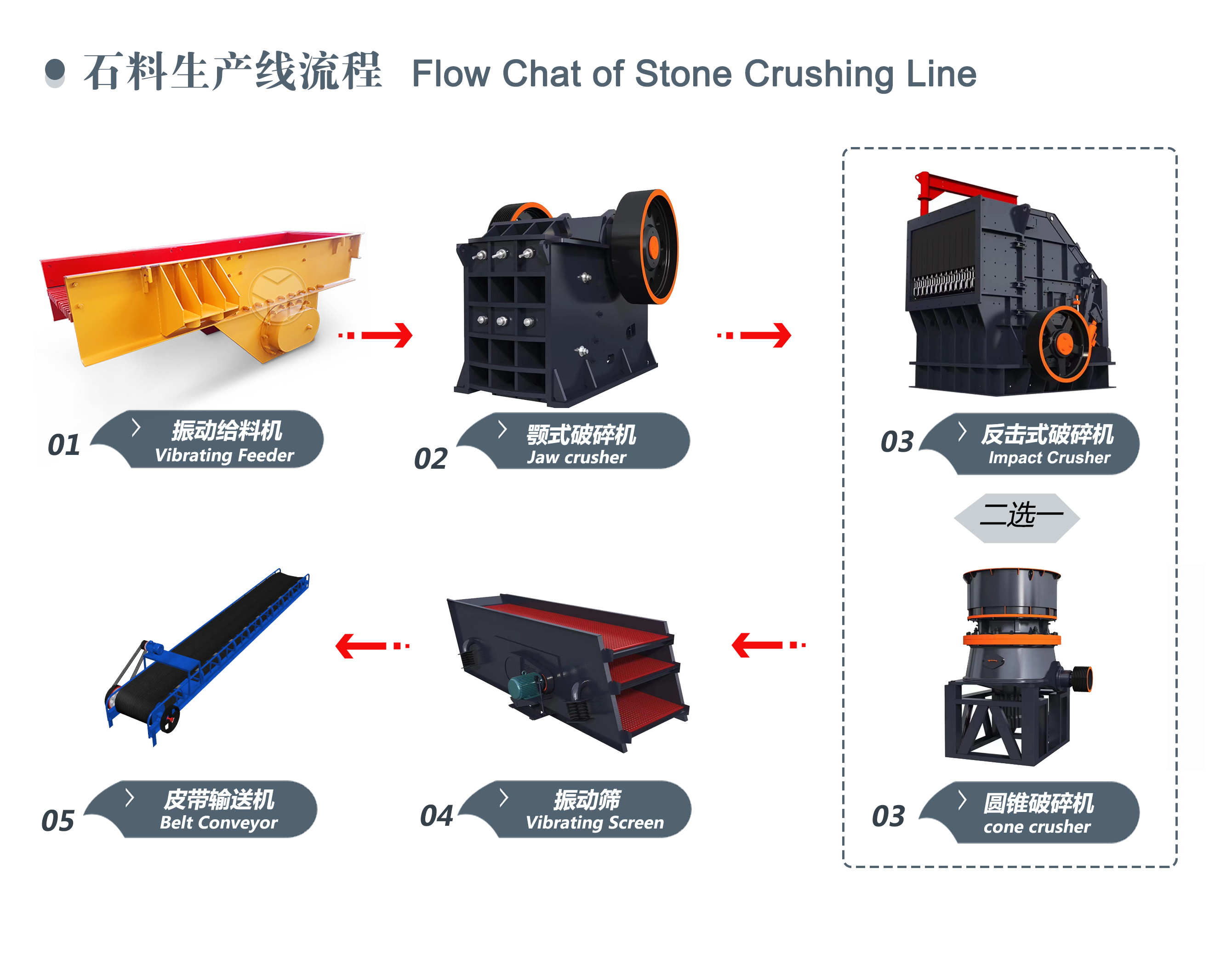 項目背景/Project background該客戶于今年在我司購買了一條破碎生產(chǎn)線,用于破碎石英石,成品0-5mm、5-10mm、10-20mm、20-30mm。石英石莫氏硬度約為7級,顎式破碎機(jī)和反擊式破碎機(jī)是破碎硬或中硬物料常用的機(jī)...