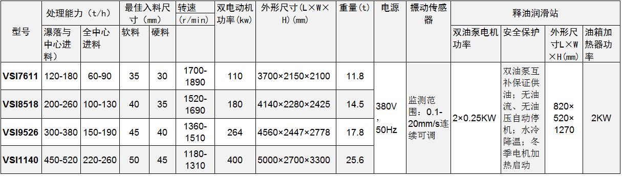 | 型號規(guī)格 | VSI-7611 | VSI-8518 | VSI-9526 | VSI-1140 | VSI-1145 | |
